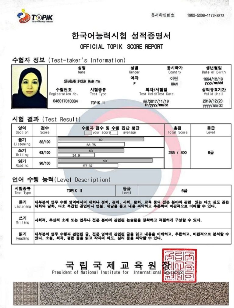 مدرک بین المللی زبان کرهای از سفارت کره جنوبی